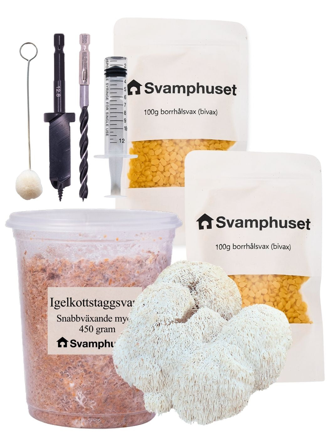 Ein perfektes Set, das alles enthält, was Sie benötigen, um Igelstachelbart auf Holzstämmen anzubauen. Reicht für ganze 3 Meter Stamm! Außerdem sparen Sie 110 SEK im Vergleich zum Einzelkauf der Produkte. Das Set enthält: