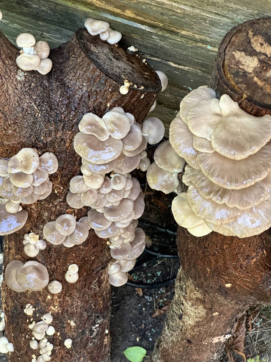 Der Graue Austernseitling ist eine der produktivsten Pilzarten, die wir anbieten. Er kolonisiert Holzstämme sehr schnell und liefert beeindruckend große Ernten.