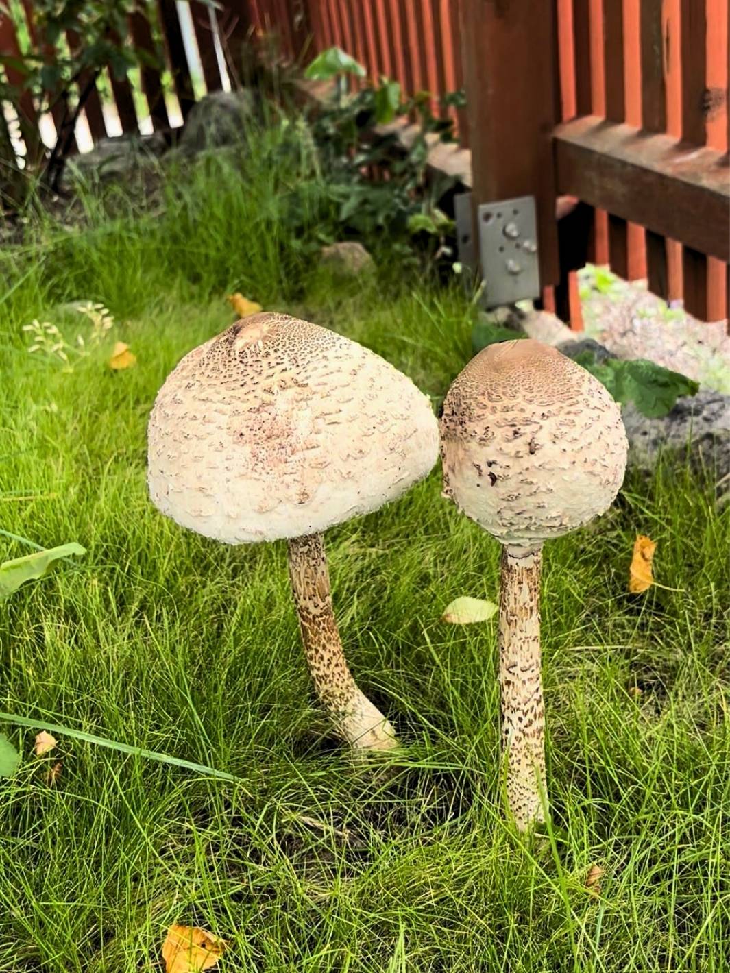 Note that the parasol mushrooms can be mistaken for poisonous amanitas (fly agarics), such as the panther cap mushroom -Amanita pantherina, and the royal fly agaric -Amanita muscaria var. regalis. A good rule of thumb to avoid a mix up is that the cap of the parasol mushroom has dark scales on a light background while the cap of the fly agarics has light scales on a dark background. There are several similar parasol mushrooms, but none of the species found in Sweden are known to be poisonous. For toxic look alikes in other countries, please investigate thoroughly.