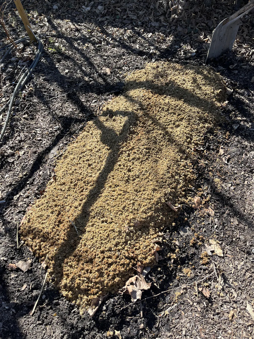 2. Strö ut ett jämt lager av all halmpellets direkt på jorden där dina plantor växer. Ta hellre för mycket än för lite.